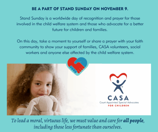 “Whether you’re religious or not, and whether you practice prayer or not, we hope you will think of children in foster care on Stand Sunday,” Gardner said. “We also hope you’ll consider ways you can support these children and their families, like becoming a CASA volunteer.”